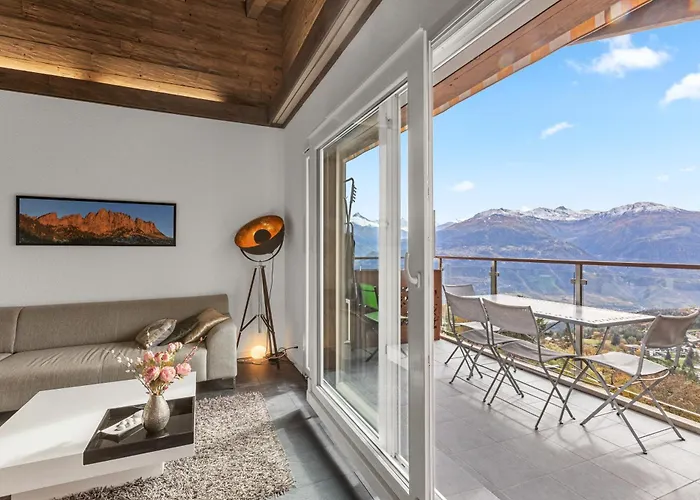 Das 90 m² große Apartment Crans-Montana 6 Pers, Grand Appart Renove Avec Balcon, Vue & Parking in Crans-Montana befindet sich rund 10 Minuten Autofahrt vom Château Mercier und ca. 3 Kilometer vom Walliser Reb- und Weinmuseum entfernt. Für Gäste, die einen aktiven Aufenthalt suchen, bietet das Apartment Zugang zu einem Golfclub.